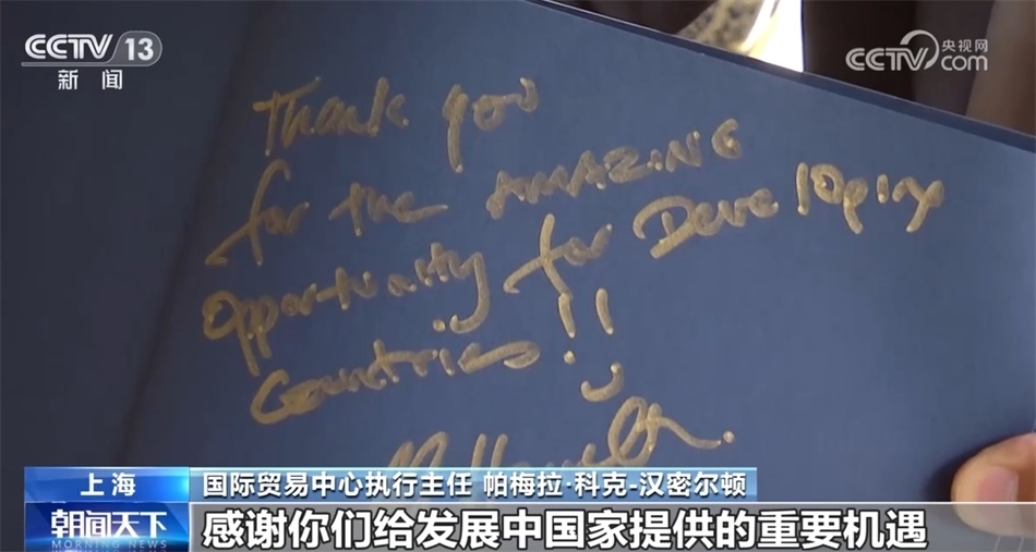 總臺(tái)央視記者昨天專(zhuān)訪了國(guó)際貿(mào)易中心執(zhí)行主任帕梅拉·科克-漢密爾頓,這是她首次參加進(jìn)博會(huì),她表示,進(jìn)博會(huì)是全球獨(dú)一無(wú)二的進(jìn)口平臺(tái),包括進(jìn)博會(huì)在內(nèi),中國(guó)持續(xù)開(kāi)放的舉措正在推動(dòng)世界發(fā)展邁出新步伐。