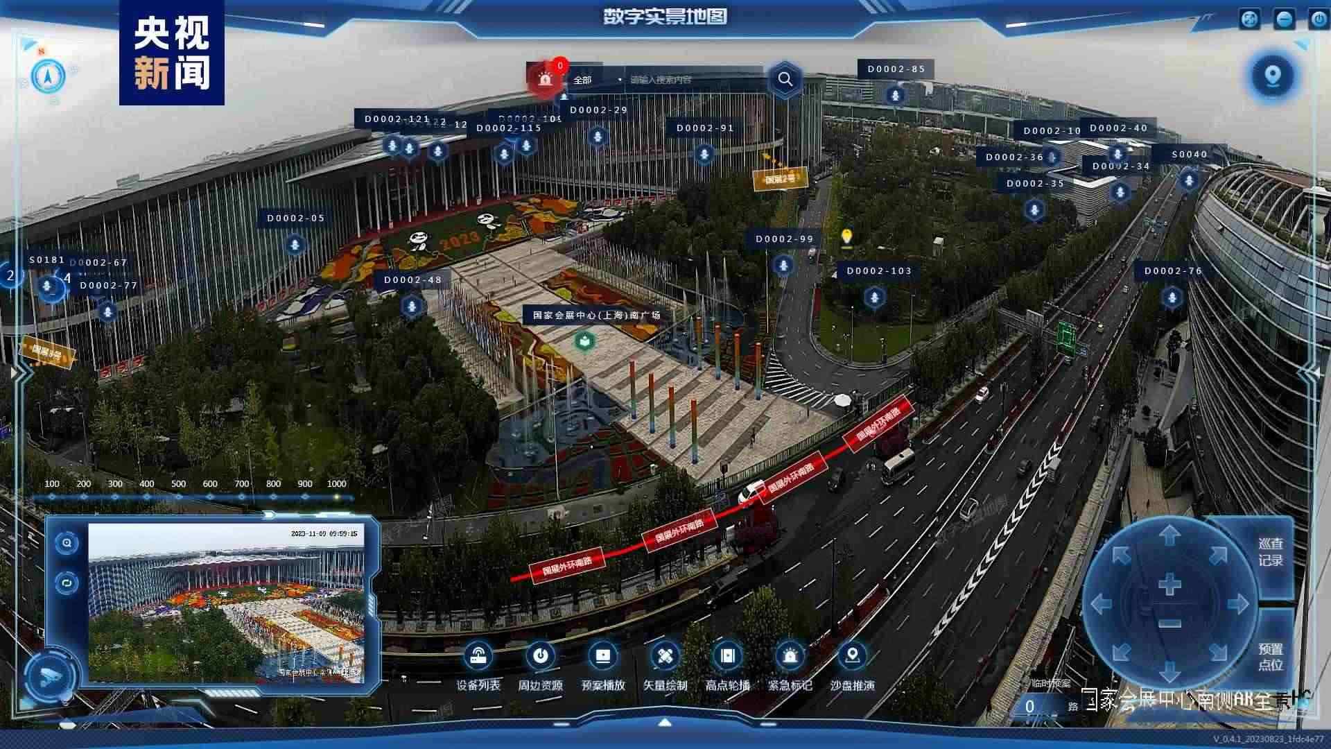 為強(qiáng)化精準(zhǔn)指揮調(diào)度,消防部門專門制作了國家會展中心的三維模型,將本屆參展的1888個展位全部進(jìn)行了數(shù)字化標(biāo)識,在指揮平臺主頁面可實現(xiàn)目標(biāo)展位一鍵搜索和快速定位。以6.1號館為試點(diǎn),通過激光雷達(dá)和可見光融合傳感器進(jìn)行快速掃描,建立展臺的三維精模,配置安保模型算法,將現(xiàn)場監(jiān)控攝像頭傳回的二維畫面與三維模型匹配,實現(xiàn)虛實場景交互融合。同時通過采集巡館人員面部、著裝等特征信息,利用AI算法,實時在館內(nèi)人群中標(biāo)定巡館人員,進(jìn)行精準(zhǔn)定位。一旦發(fā)現(xiàn)異常狀況,指揮部值班人員能快速、精準(zhǔn)地向所有駐防人員提供最佳處置線路指引和最優(yōu)輔助決策。
