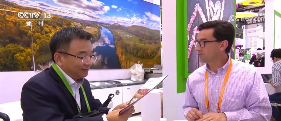 進博會的最后一天,記者來到美國食品和農(nóng)產(chǎn)品館時,美國參展商克里斯依舊在緊張地和客戶對接洽談,此時距離閉幕只剩下不到6個小時。