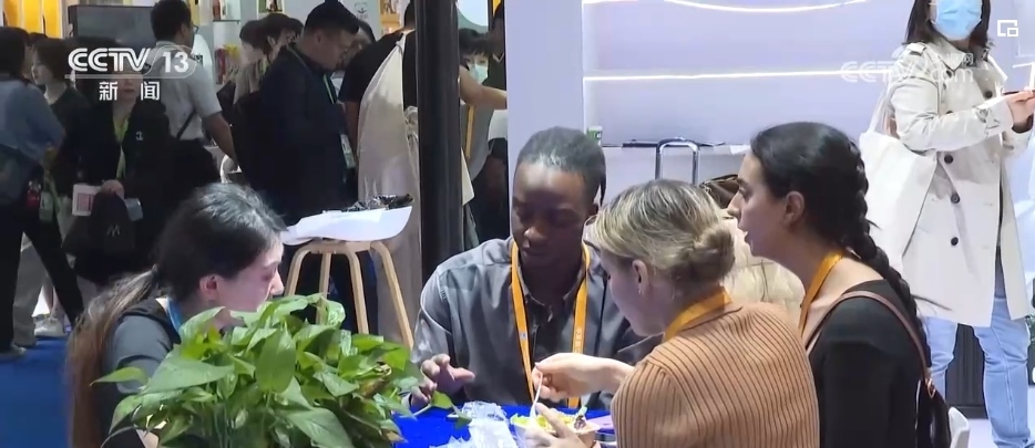 晉蘭加說的地方是在“四葉草”旁邊的進博會常年展示交易平臺。2023年,通過合作洽談,他的展品在進博會之后可以直接變成交易平臺里的商品。在那兒,進博會永不落幕。