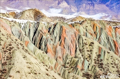 新疆昌吉,白雪與色彩艷麗的丹霞地貌相互映襯,美不勝收。