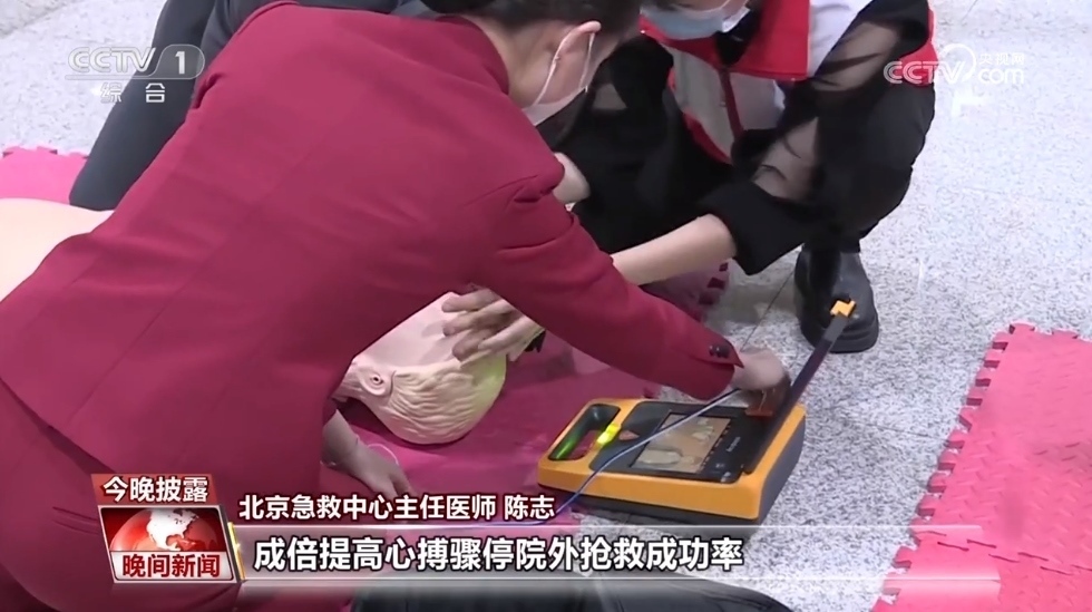北京急救中心主任醫(yī)師 陳志:對于心搏驟停的患者,如果我們僅使用單純的胸外壓、人工呼吸這些基本心肺復(fù)蘇的方法,搶救成功率其實(shí)不高。如果這個(gè)時(shí)候有了AED,配合AED的電擊就能夠成倍提高心搏驟停院外搶救成功率。