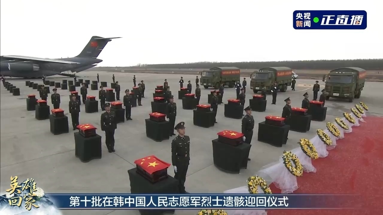 記者從退役軍人事務(wù)部了解到,今天(11月23日)上午,第十批25位在韓中國人民志愿軍烈士遺骸及遺物由空軍專機(jī)護(hù)送從韓國接回遼寧沈陽。