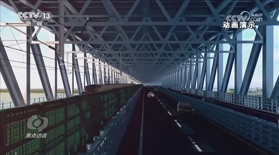 而說常泰長江大橋是個超級工程,不僅因為它有“跨度最大”的這個頭銜,更因為它擁有多種功能,在這座上下兩層的橋上,上層為六車道高速公路,下層為兩線鐵路和四車道普通公路,這也是長江上首座“三位一體”的跨江大橋。那么,多種功能的設(shè)計又是出于什么樣的考慮呢?