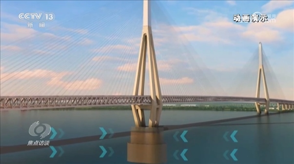 鄭清剛:“鐵路一側(cè)的荷載比公路一側(cè)要重8.6噸,就是每延米有8.6噸,就像兩個人抬東西,比如一頭重量大了的話,就會發(fā)生一頭高一頭低的情況。我們是通過一些結(jié)構(gòu)上的辦法,采用不同強度的斜拉索來匹配這個受力?!?/p>