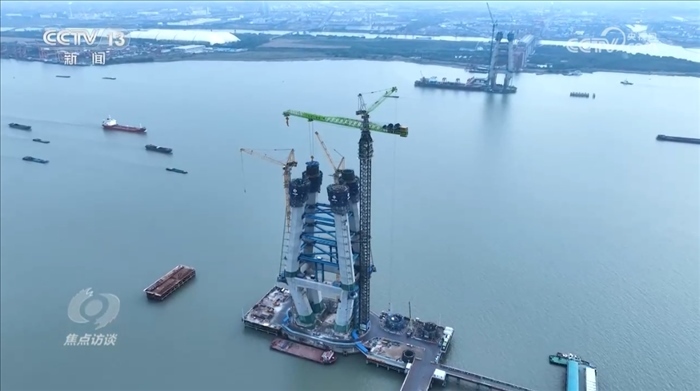 央視網(wǎng)消息(焦點訪談):近些年來,中國在多個領(lǐng)域創(chuàng)造了大量的世界之最。這一個個的 “世界首次”“世界第一”深刻地改變了中國,也令世界驚嘆。從今天起《焦點訪談》欄目推出“登攀”系列節(jié)目,我們來看一看中國奇跡誕生背后的故事?!胺晟介_路、遇水架橋”,這是中國基建人的日常,他們不斷突破,創(chuàng)造了一個個登頂世界之最的基建名場面。今天我們要講的是一座修建當中的長江大橋——位于江蘇常州和泰州之間的常泰長江大橋,作為世界上在建的最大跨度的公鐵兩用斜拉橋,這座大橋在建設(shè)的過程當中遇到了很多困難,也頻頻上演著突破和創(chuàng)新。