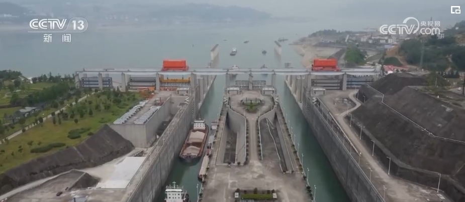 其中,三峽船閘運行10148閘次,通過量1.56億噸;三峽升船機運行4187廂次,通過量437.89萬噸。