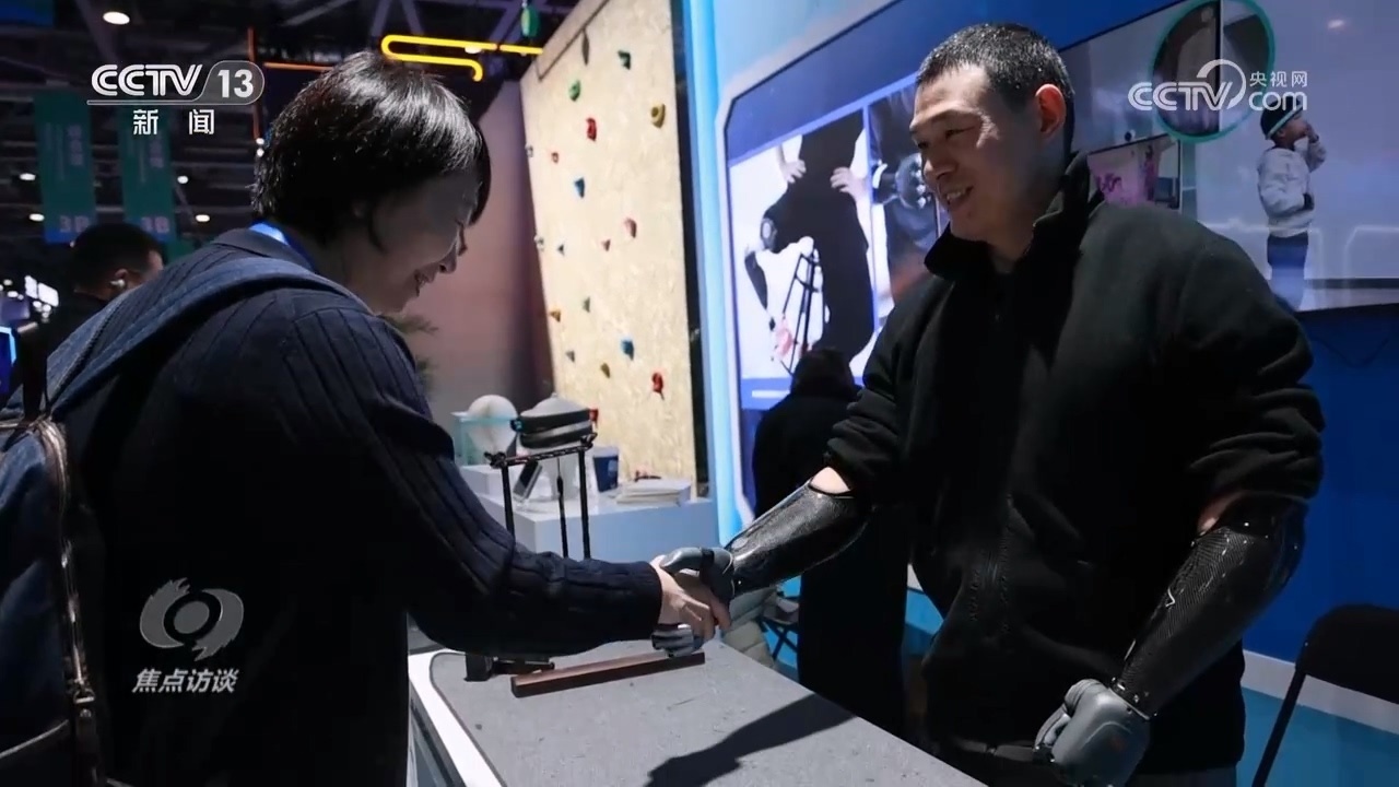 博覽會現(xiàn)場,一位坐在角落里的中年男子引起了我們的注意。他叫倪敏成,九歲時(shí)因?yàn)橐馔馐ルp手,但讓他更感意外的是,30年后,腦機(jī)接口技術(shù)讓他重新?lián)碛辛艘浑p智能仿生手。