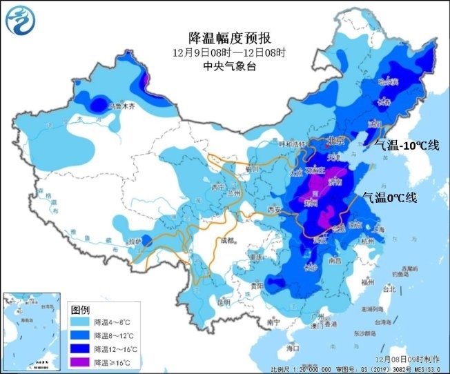 大風(fēng)降溫預(yù)報(bào):預(yù)計(jì)9日至11日,受較強(qiáng)冷空氣影響,東北地區(qū)、華北、黃淮、江漢、江淮、江南西部和北部等地氣溫下降6~10℃,東北地區(qū)中部、華北南部、黃淮等地降溫幅度可達(dá)12℃以上;12日早晨,最低氣溫0℃線將南壓到湖北中部至蘇皖北部一帶。期間,長江以北大部地區(qū)有4~6級偏北風(fēng),陣風(fēng)7~8級;渤海、黃海、東海海域有5~7級風(fēng)、陣風(fēng)8~9級。