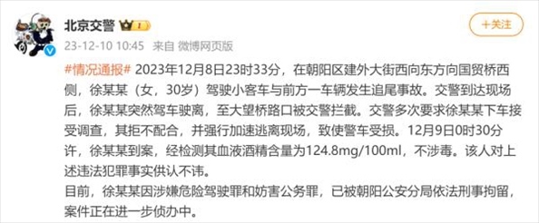 ·北京交警通報(bào):一女子醉駕肇事逃逸并撞壞警車(chē),已被刑拘。
