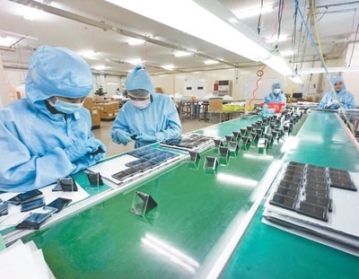 龍江工業(yè)園內(nèi),方正電機(jī)(越南)有限責(zé)任公司車間里的當(dāng)?shù)貑T工正在工作。黎國忠攝