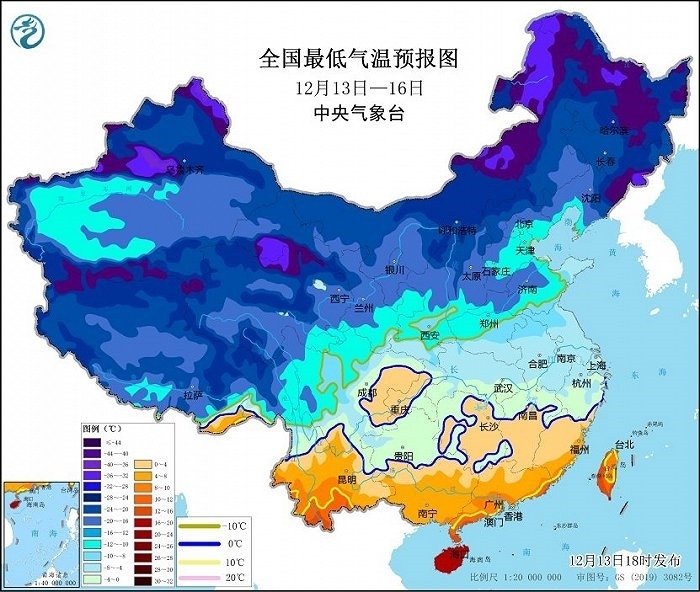 中央氣象臺(tái)12月13日18時(shí)繼續(xù)發(fā)布寒潮色預(yù)警: