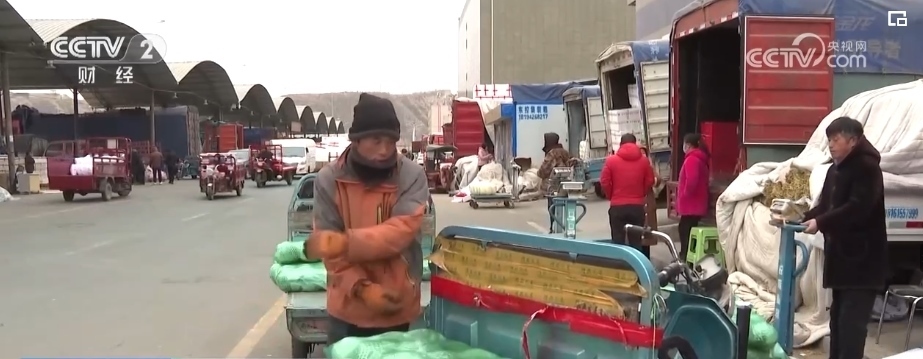 在石家莊國際農(nóng)產(chǎn)品批發(fā)交易中心,裝載著蔬菜的運(yùn)輸車進(jìn)進(jìn)出出,商戶們忙著將一袋袋包裝好的蔬菜搬運(yùn)到市場,分批銷售。
