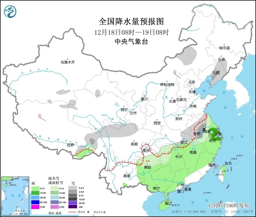 預(yù)計(jì),17日夜間至19日,南方大部地區(qū)有雨雪天氣,江淮地區(qū)將有雨夾雪或雪,江南、華南等地將有小雨,局地中雨。17日至18日,貴州中北部和東部、湖南西部和南部等高海拔地區(qū)有凍雨,其中夜間至凌晨時(shí)段凍雨范圍較大。未來(lái)我國(guó)大部低溫持續(xù)偏低,受雨雪天氣疊加影響,外出請(qǐng)注意路面濕滑和交通安全。