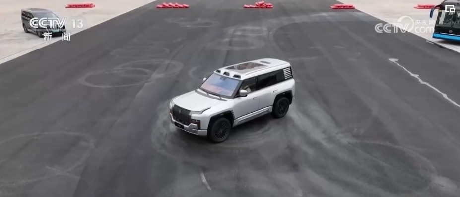 總臺記者 張浩:說到中國新能源汽車在創(chuàng)新方面的最新成果,比亞迪最近投入量產(chǎn)的一款新品越野車吸引了很多人的關注。這款車最與眾不同的功能就是它可以實現(xiàn)原地360度旋轉掉頭。只需要在屏幕上按一下操作鍵,這臺車就可以開始原地旋轉。有了這個功能,就能解決駕駛者在狹小空間內停車難的問題,或遇到極端路況時也能夠及時掉頭脫困。