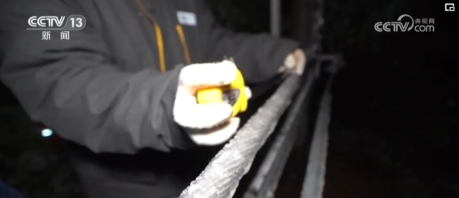 根據(jù)現(xiàn)場檢測,現(xiàn)在導(dǎo)線上的覆冰已經(jīng)超過了18毫米,融冰工作也正式開始。老廖告訴記者,他們采用的是導(dǎo)電加熱融冰的手段,通過對導(dǎo)線進(jìn)行增加大電流,自動加熱,從而讓冰融化,但這一過程有時候要等很久。