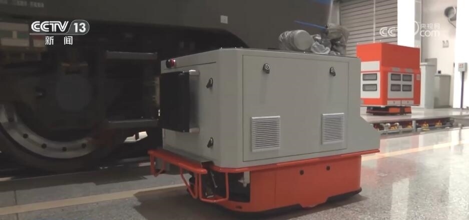 總臺(tái)記者 薛東海:列車途徑沿線隧道眾多,從而行駛過(guò)程當(dāng)中會(huì)積攢大量煤灰、粉塵,影響列車的安全。也意味著當(dāng)列車行駛到一段距離之后,就要來(lái)到庫(kù)區(qū)進(jìn)行維修和除塵工作。曾經(jīng)這項(xiàng)主要是依賴于人工,需要四名工人來(lái)到溝底進(jìn)行吹除作業(yè)。到了今年,這樣的工作被我旁邊的這個(gè)“小家伙”智能機(jī)器人取代了。
