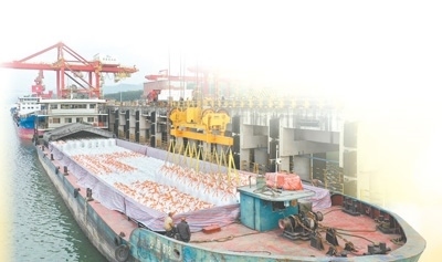 “龍頭港是糧食到達(dá)涪陵后的陸運(yùn)起點(diǎn)。憑借涪陵區(qū)完備的高速公路網(wǎng)和鐵路專線,到港糧食基本能在24小時(shí)內(nèi)到達(dá)市內(nèi)的其他區(qū)縣。”涪陵區(qū)綜合經(jīng)濟(jì)研究中心副主任周康龍介紹,涪陵擁有5條過境高速公路,通車?yán)锍踢_(dá)175公里,鐵路通車?yán)锍踢_(dá)207公里。去年,涪陵向重慶中心城區(qū)、周邊區(qū)縣、相鄰省份提供原糧9萬噸、成品糧油32萬噸、豆粕15萬噸、飼料35萬噸。