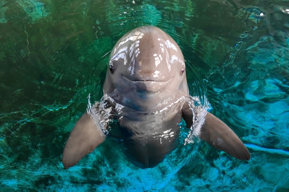 7月5日,在湖北武漢中科院水生所白鱀豚館,世界第一頭在全人工環(huán)境中成功繁育的長(zhǎng)江江豚“淘淘”迎來(lái)18歲生日。