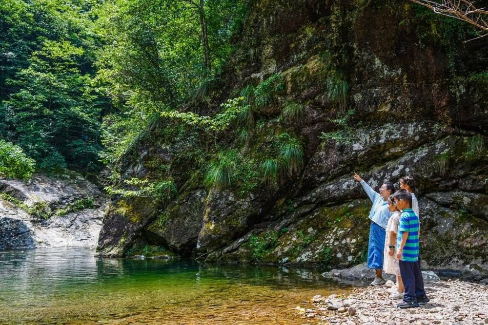 8月13日,在浙皖兩省交界處的清涼峰野外博物館,環(huán)保志愿者向小朋友講解生態(tài)環(huán)保知識(shí)。