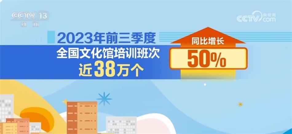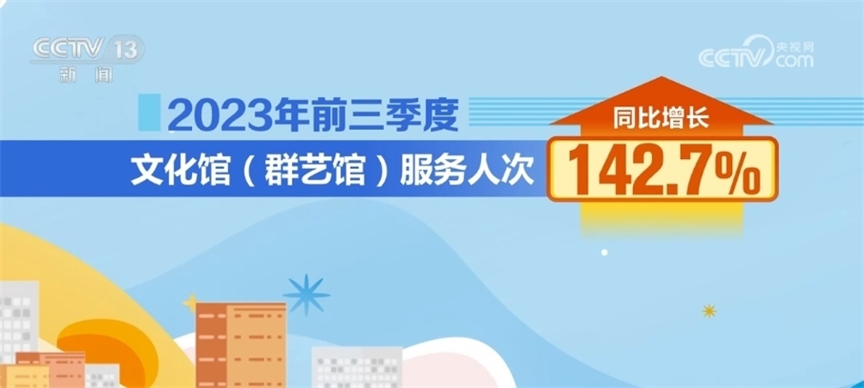 據(jù)統(tǒng)計,2023年前三季度公共圖書館總流通人次同比增長55.2%;2023年前三季度,全國文化館培訓班次近38萬個,同比增長50%;文化館(群藝館)服務(wù)人次同比增長142.7%。