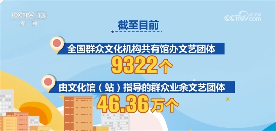 與此同時,各地積極引導帶動農(nóng)民群眾在文化生活中當主角、唱大戲,統(tǒng)計數(shù)據(jù)顯示,截至目前,全國群眾文化機構(gòu)共有館辦文藝團體9322個,由文化館(站)指導的群眾業(yè)余文藝團體46.36萬個。