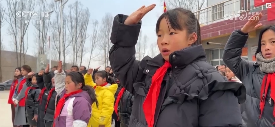 新年第一天,在積石山縣劉集鄉(xiāng)高李村,來自高李保安族春蕾小學(xué)的53名師生和高李村集中安置點(diǎn)的部分村民、志愿者也共同舉行了升旗儀式。孩子們對著國旗敬少先隊(duì)隊(duì)禮,村民們則注視著國旗行注目禮,表達(dá)著對祖國的敬意和深深的愛意。