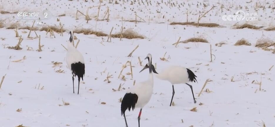 在內(nèi)蒙古烏蘭察布市涼城縣的一處開闊地,三只丹頂鶴時(shí)而遠(yuǎn)眺觀望、時(shí)而低頭覓食。丹頂鶴是國家一級(jí)重點(diǎn)保護(hù)野生動(dòng)物,全球數(shù)量僅2000余只。丹頂鶴每年春季2月末3月初會(huì)前往內(nèi)蒙古以及東北三省的繁殖地,而后又會(huì)在每年秋季9月末到10月初開始離開繁殖地往南遷徙,11月初開始分批到達(dá)江蘇鹽城等地。本次發(fā)現(xiàn)丹頂鶴在內(nèi)蒙古地區(qū)越冬,初步猜測(cè)是由于食物來源比較充足。此外,為了保護(hù)好這些越冬的丹頂鶴,當(dāng)?shù)馗鞑块T也都做好了準(zhǔn)備,隨時(shí)跟蹤監(jiān)測(cè),保障丹頂鶴的安全。