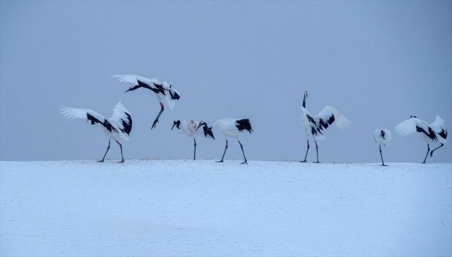 2024年1月4日,黑龍江齊齊哈爾,扎龍自然保護區(qū),丹頂鶴雪中漫步。