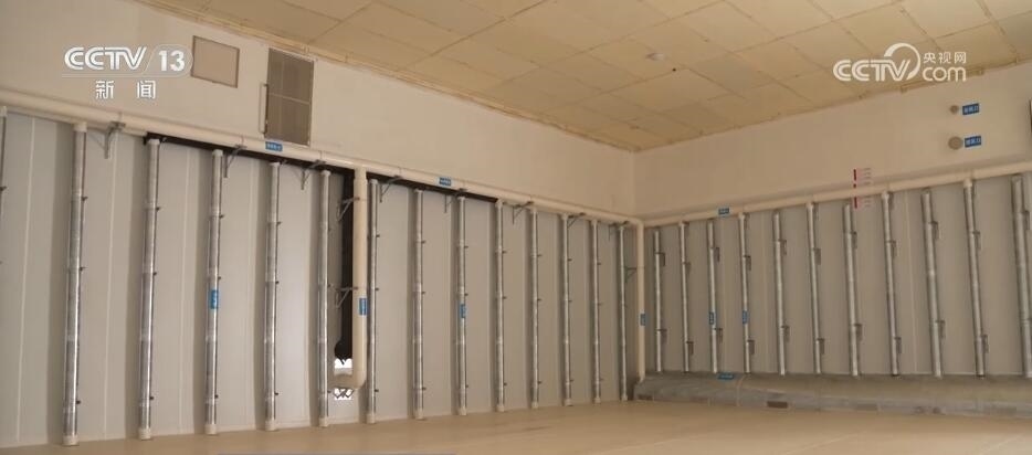 當(dāng)工作人員打開這座暫時空著的倉庫時,墻壁上的一排排管道十分搶眼。天氣熱的時候,這四面墻的氣道里都會充入冷空氣,再加上頂部的風(fēng)道,這“五面立體動態(tài)控溫技術(shù)”就相當(dāng)于給糧倉內(nèi)外加了一道隔離帶,低溫保鮮。