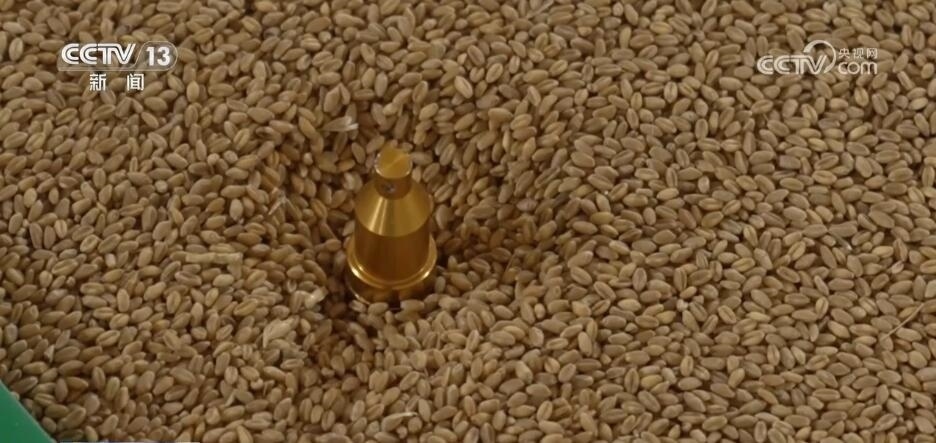 由于提前進行了預(yù)約,糧庫的工作人員與付士海快速確認(rèn)好信息之后,就開始對糧食進行取樣。為了減少農(nóng)戶的等待時間,在這一環(huán)節(jié),同樣用先進的科技手段加了速,只需要兩三分鐘就可以完成。