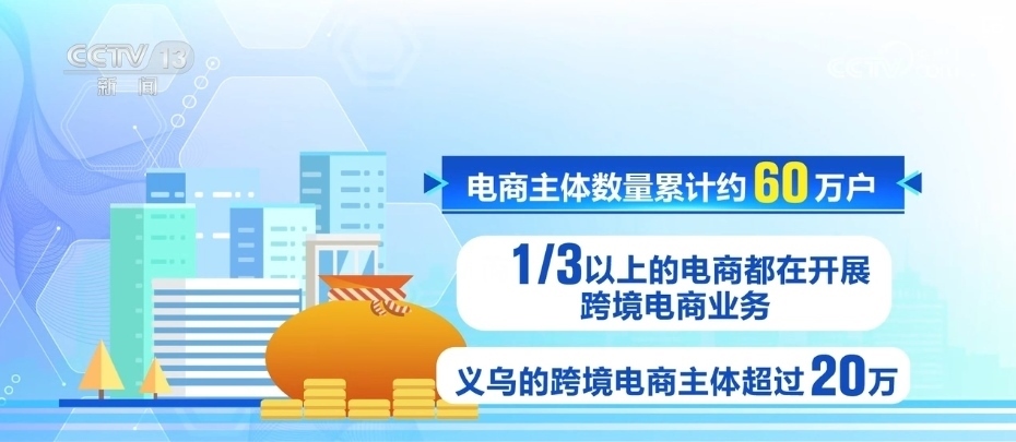 2023年,義烏的市場(chǎng)經(jīng)營主體突破100萬戶。其中,新設(shè)電商主體17.57萬戶,同比增長48.33%。電商主體數(shù)量累計(jì)約60萬戶,而三分之一以上的電商都在開展跨境業(yè)務(wù),義烏的跨境電商主體超過20萬。