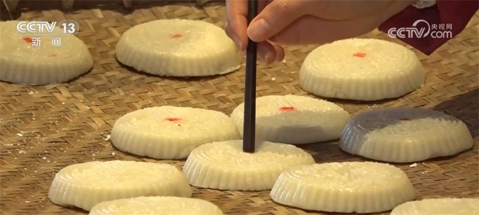 這幾天,黃山市黃山區(qū)湯口鎮(zhèn)的村民們正忙著打“食桃”。村民們將糯米和秈米碾成米粉,按比例加熱水?dāng)嚢?,再將一塊一塊球狀的米粉團摁進模子里敲打出來,打好的食桃放入蒸箱中,蒸二十分鐘即可出鍋。蒸熟的食桃口感綿糯,刻著各種吉祥圖案,寓意著人們對新一年的祝福和期盼。