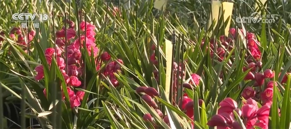 在云南,不同類型的年宵花也開始大量上市。在玉溪江川區(qū)九溪鎮(zhèn)的花卉大棚里,整齊擺放的大花蕙蘭競相開放。大花蕙蘭可單獨擺放,也可制作成胸花等小型花藝,特別是瓶插期長達45天,成為這段時間的暢銷花。