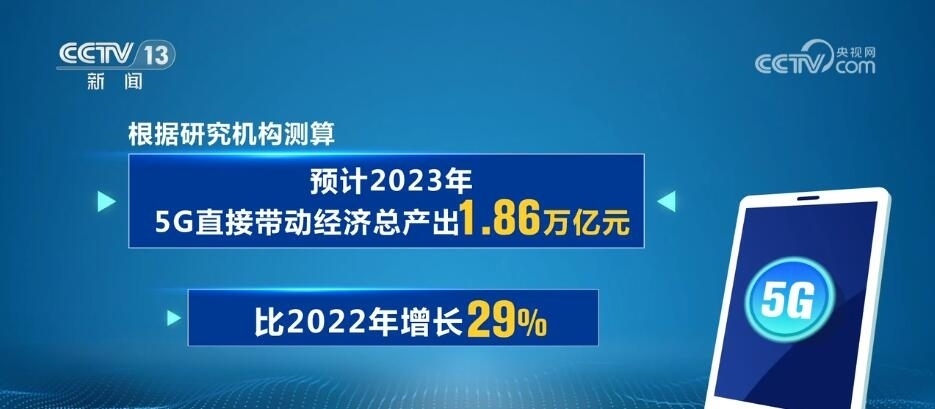 截至2023年底,我國5G移動電話用戶達8.05億戶。根據(jù)研究機構(gòu)測算,預(yù)計2023年,5G直接帶動經(jīng)濟總產(chǎn)出1.86萬億元,比2022年增長29%。