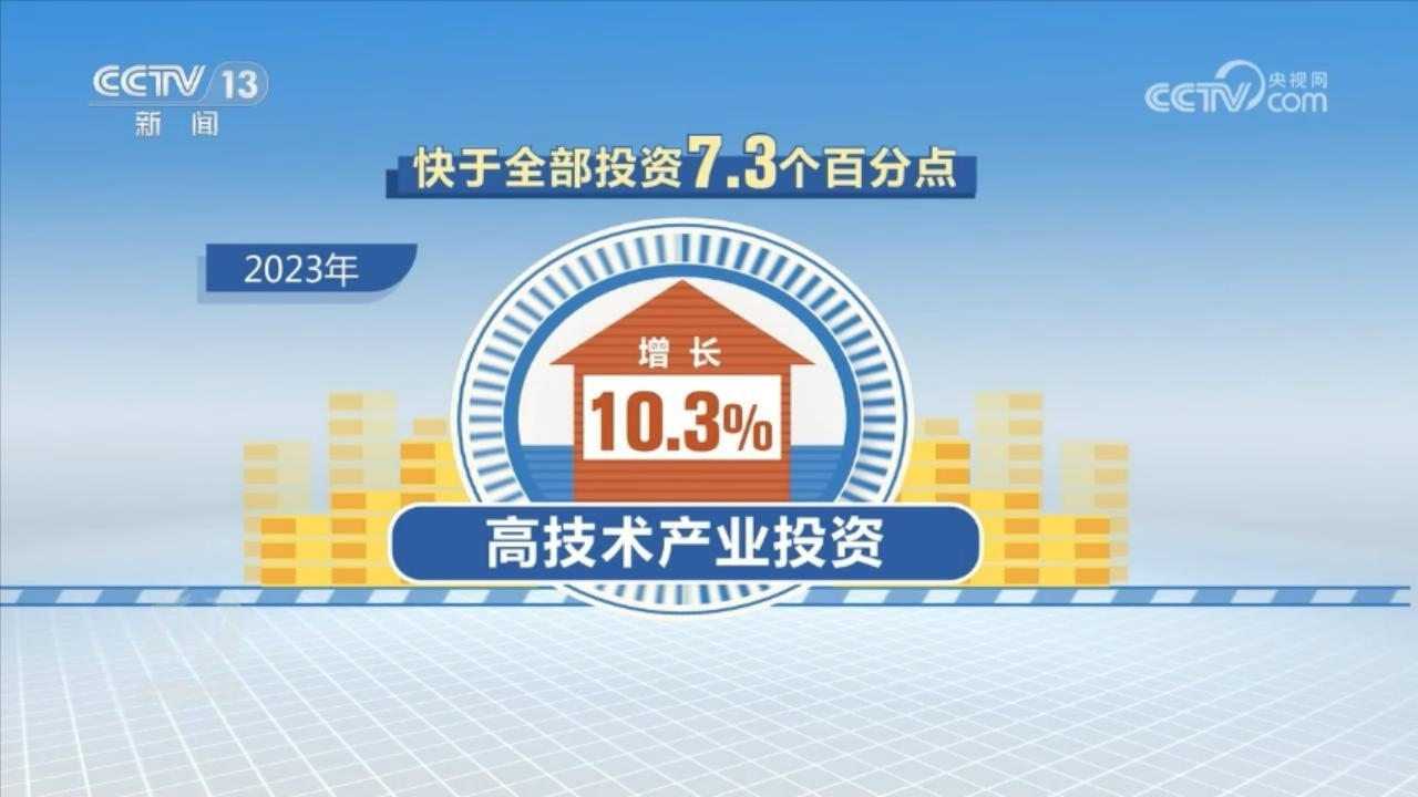 在投資領(lǐng)域,受房地產(chǎn)市場(chǎng)深度調(diào)整影響,2023年全年全國(guó)固定資產(chǎn)投資比上一年增長(zhǎng)3%,而扣除房地產(chǎn)開(kāi)發(fā)投資,民間投資增長(zhǎng)9.2%。尤為值得注意的是,2023年高技術(shù)產(chǎn)業(yè)投資增長(zhǎng)10.3%,快于全部投資7.3個(gè)百分點(diǎn)。其中,高技術(shù)制造業(yè)、高技術(shù)服務(wù)業(yè)投資分別增長(zhǎng)9.9%、11.4%。