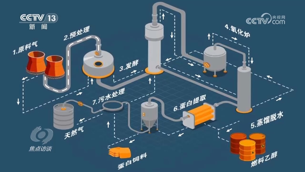 河北首朗新能源科技有限公司副總經(jīng)理?xiàng)钇G:“首先工業(yè)尾氣通過管道輸送到氣體預(yù)處理工段,經(jīng)過簡(jiǎn)單的壓縮和煤氣凈化,由管道輸送到核心發(fā)酵工段,氣體從發(fā)酵罐的底部進(jìn)入到頂部,單程只有幾十秒的時(shí)間?!?/p>