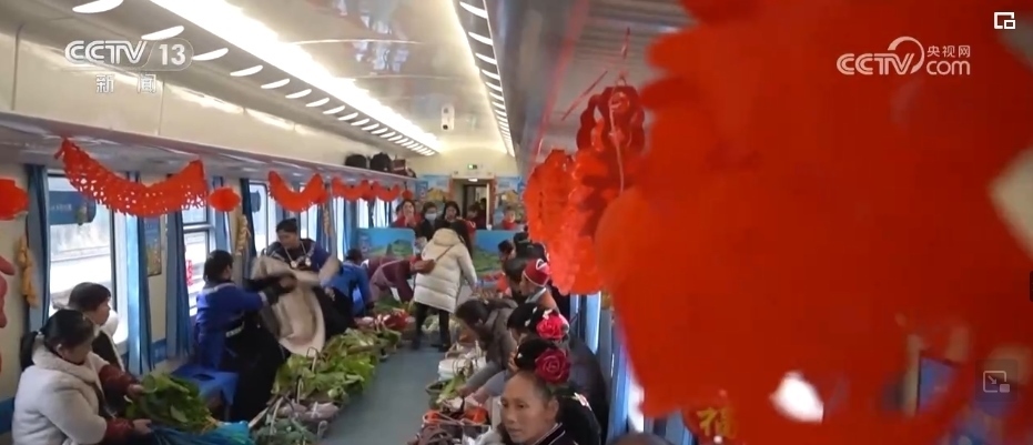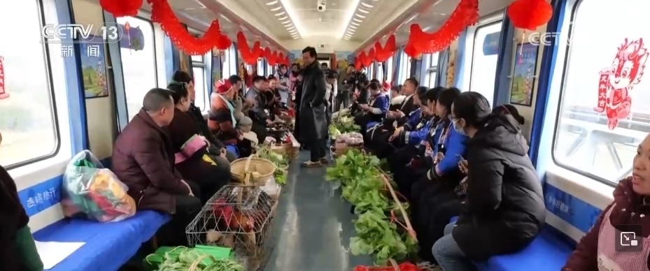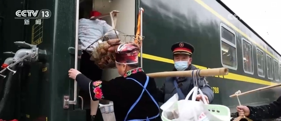 這趟“慢火車”,是鄉(xiāng)親們走親訪友的“幸??燔嚒?,更是把大山里的農(nóng)特產(chǎn)品送到山外售賣的“致富快車”。新春臨近,列車上的農(nóng)特產(chǎn)品車廂變得熱鬧起來,村民們將自家的年貨拿上車售賣,車廂里喜氣洋洋。