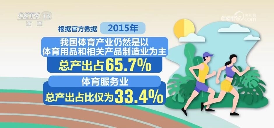 根據(jù)官方數(shù)據(jù),2015年,我國(guó)體育產(chǎn)業(yè)仍然是以體育用品和相關(guān)產(chǎn)品制造業(yè)為主,總產(chǎn)出占65.7%,體育服務(wù)業(yè)總產(chǎn)出占比僅為33.4%。不過,在增加值層面,體育服務(wù)業(yè)占比達(dá)到了49.2%,呈現(xiàn)出巨大的潛力和快速增長(zhǎng)的態(tài)勢(shì)。