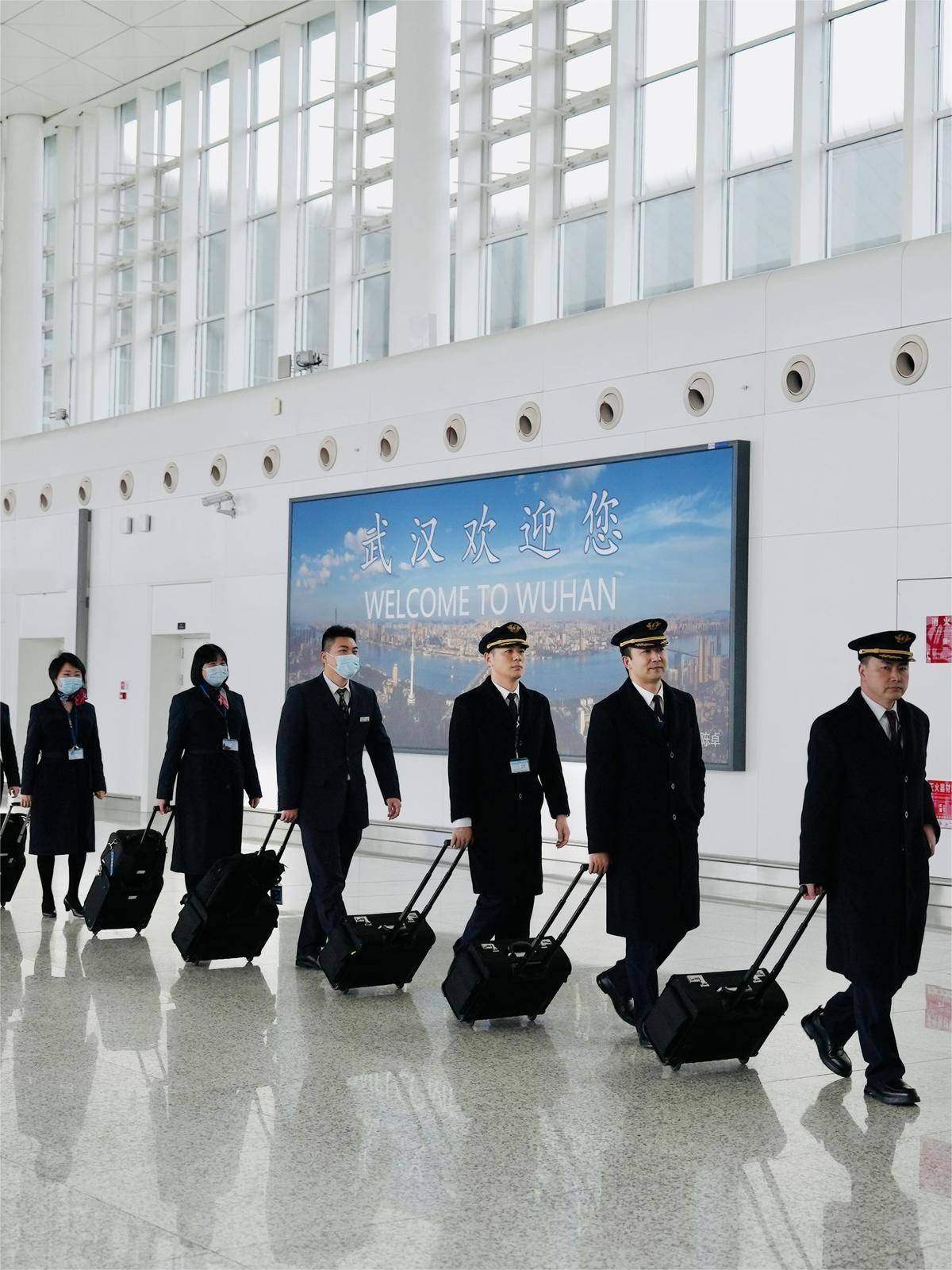 東航機(jī)組從武漢天河機(jī)場(chǎng)出乘。(通訊員 李展鵬 攝)