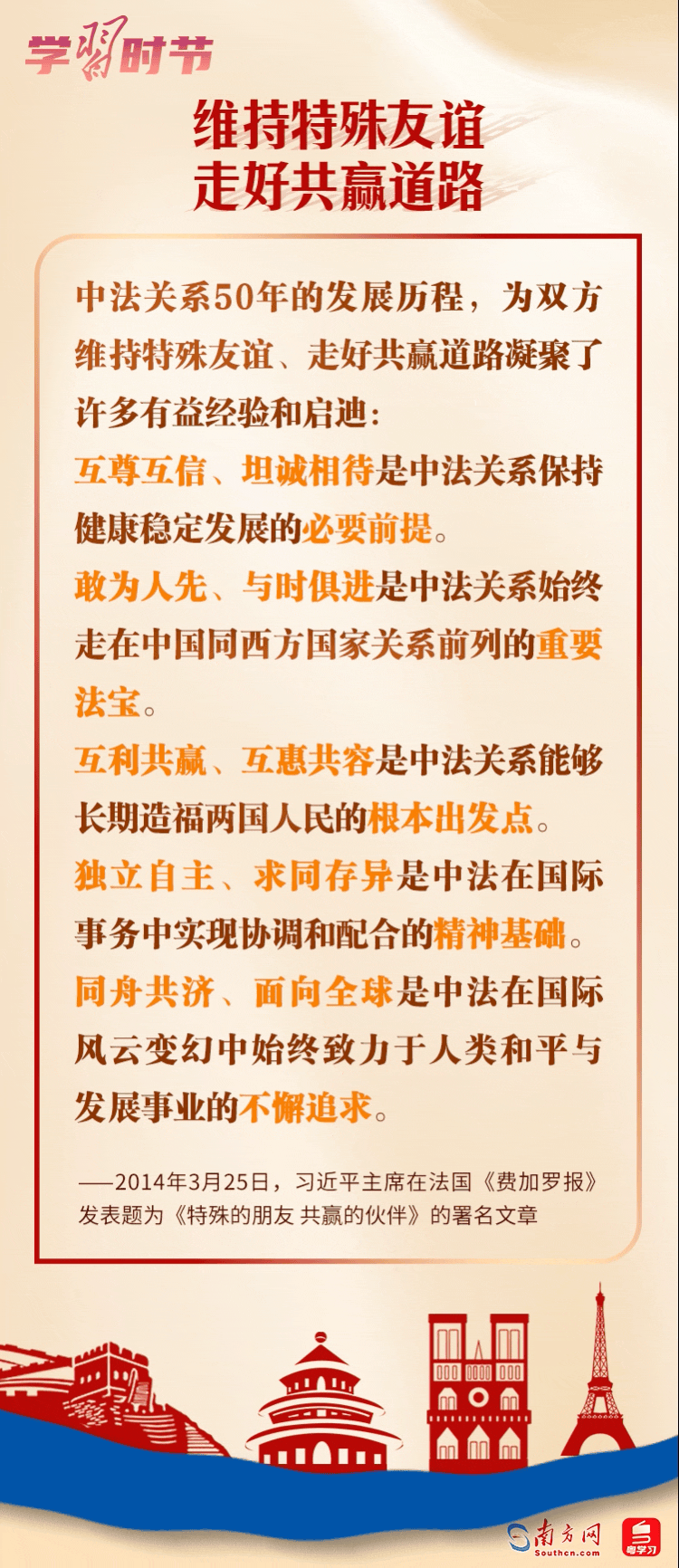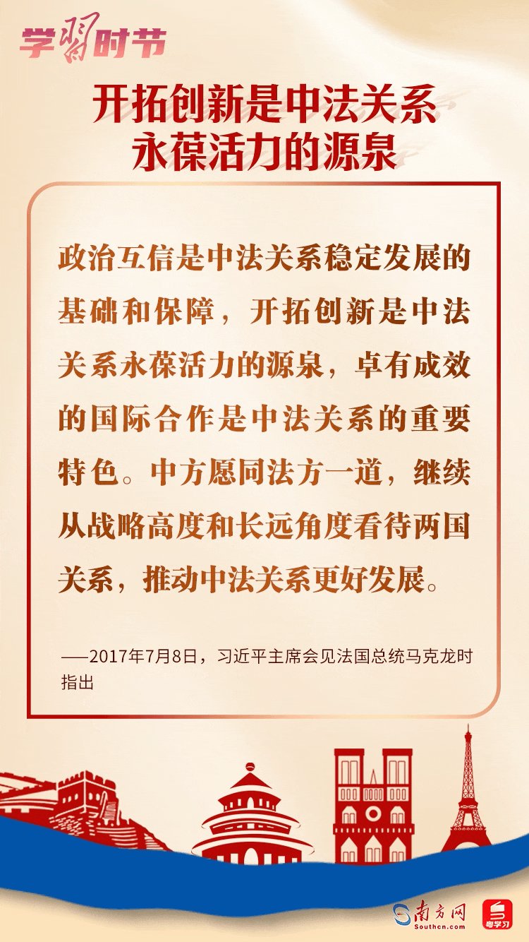 習(xí)近平主席一向高度重視中法關(guān)系發(fā)展,在許多場合作出重要論述,讓我們一起學(xué)習(xí)。