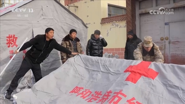 甘肅省臨夏州積石山縣石塬鎮(zhèn)振興社區(qū)副主任孔德義:“他發(fā)揮的作用特別大,因為他畢竟是部隊出身,身體素質(zhì)好,搭帳篷這一塊特別強。有他在的話,5分鐘就能完成一個,效率特別高。還有像如何規(guī)避余震帶來的傷害,他先給先鋒隊講解,我們再逐個分散開給群眾講解,等同于一個專業(yè)人士帶領(lǐng)著先鋒隊去幫助更多的群眾,去服務(wù)群眾?!?/p>