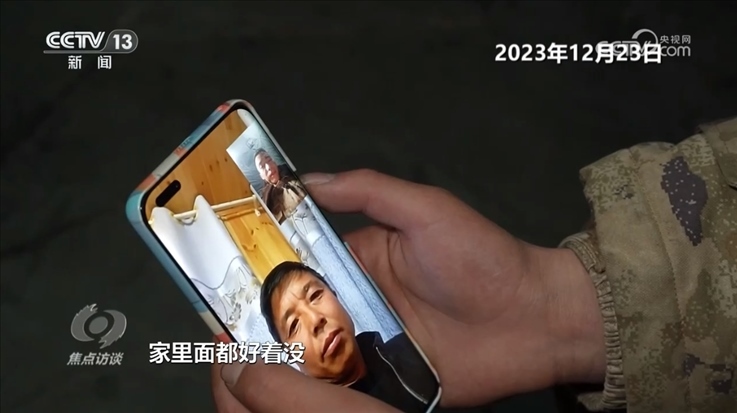 張方明:“一直走到大河家鎮(zhèn),發(fā)現(xiàn)災(zāi)情越來越嚴重,就打電話說我回來了,我爸第一時間跟我說:‘你先不要回去了,這邊搬物資啥的,鄉(xiāng)政府都比較忙,你是當兵的,你要來這邊幫忙,你要肩負起這份責任。’”