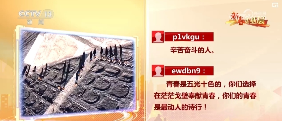 《新春走基層·阿爾金山無人區(qū)的青春之歌》播出后,網(wǎng)友們被這群在無人區(qū)工作的青年人感動。有網(wǎng)友說:“辛苦奮斗的人?!币灿芯W(wǎng)友為他們的奉獻(xiàn)點贊,說:“青春是五光十色的,你們選擇在茫茫戈壁奉獻(xiàn)青春,你們的青春是最動人的詩行!”