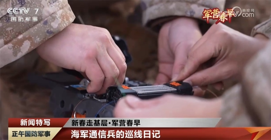 海軍某總站 鄭乾:因為光纖是玻璃材質(zhì)的,冬天特別寒冷,就會導(dǎo)致光纖特別容易斷裂,特別是在光纖切割刀切割光纖的時候,一不小心就會砸斷,有可能出現(xiàn)強行熔接的情況,一旦出現(xiàn)這種情況,任務(wù)就(可能)因為(數(shù)據(jù))無法使用,任務(wù)就會無法開展、失敗了。