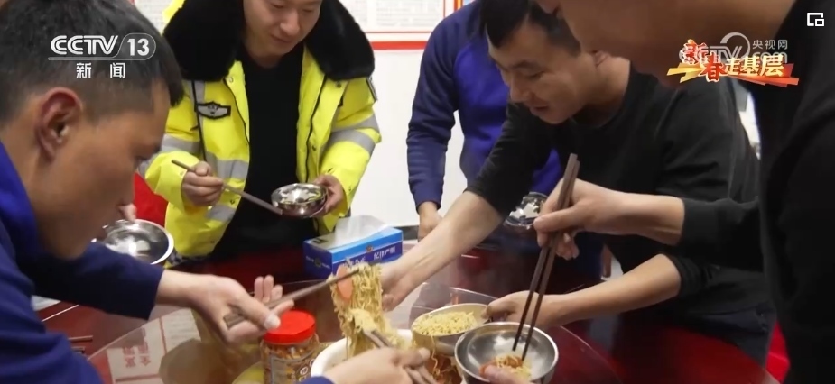將失聯(lián)人員和車輛引導至國道后,大家驅車返回了救援站。從中午12時出發(fā),到晚上12時返回,12個小時的救援工作結束后,一碗熱騰騰的泡面是他們今天吃上的第一口熱乎飯。