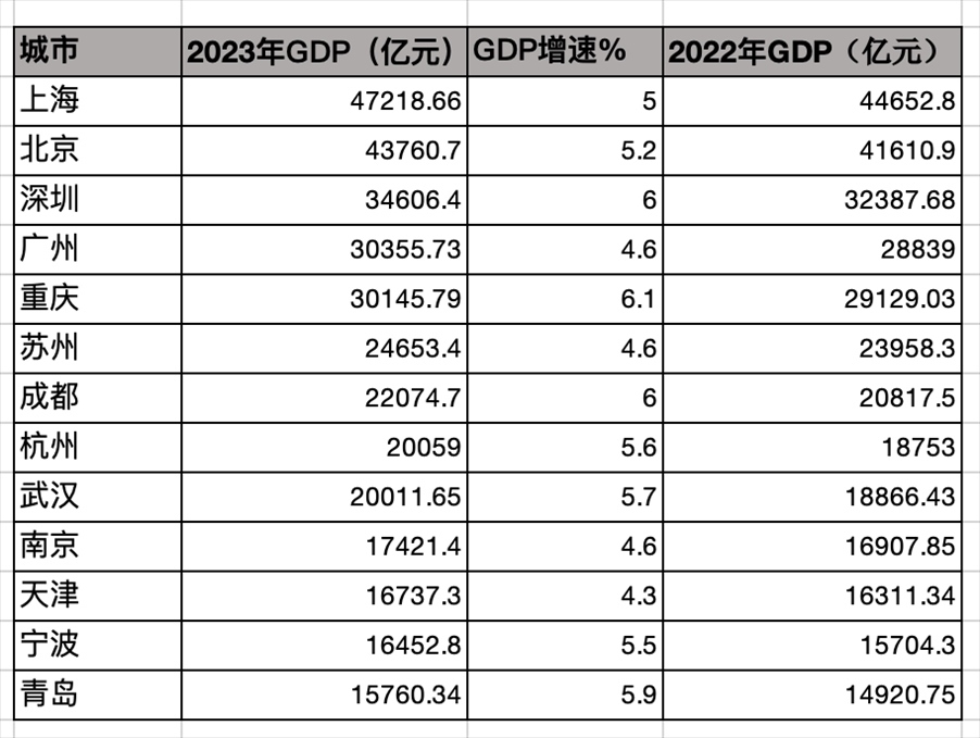 2023年GDP10強(qiáng)城市
