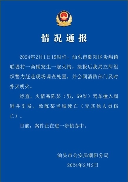 ·汕頭一男子駕車撞入商鋪引發(fā)火情,其當(dāng)場(chǎng)死亡。