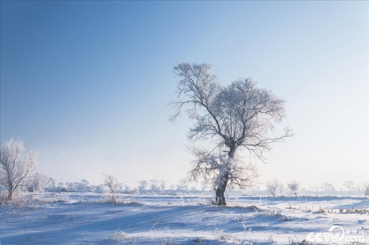 吉林松花江邊現(xiàn)霧凇景觀。