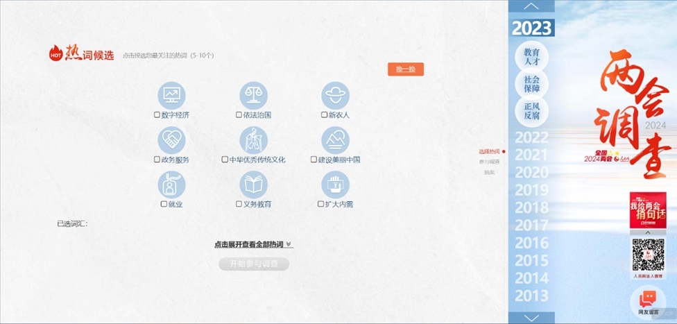 1、登錄人民網(wǎng)2024年全國(guó)兩會(huì)調(diào)查頁(yè)面。